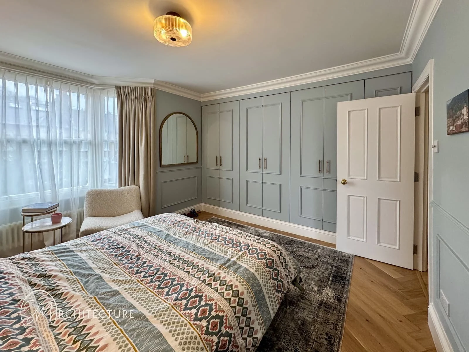 Set within a tall, narrow Victorian terrace in the Royal Borough of Greenwich, Lightened Up rethinks the home’s layout to make every space work harder. The project focused on redistributing service functions - laundry, dressing and storage - to the upper floors, freeing up valuable space at ground level for family living. A calm, muted palette was chosen to bridge contrasting tastes and act as a backdrop to the clients’ vibrant artwork. Custom joinery and inventive IKEA adaptations made use of every awkward corner, from under-eaves wardrobes to built-in hallway storage. Subtle structural adjustments, like large pocket doors and reconfigured openings, improved flow and daylight throughout. The result is a home that feels brighter, more balanced and perfectly tailored to its family.